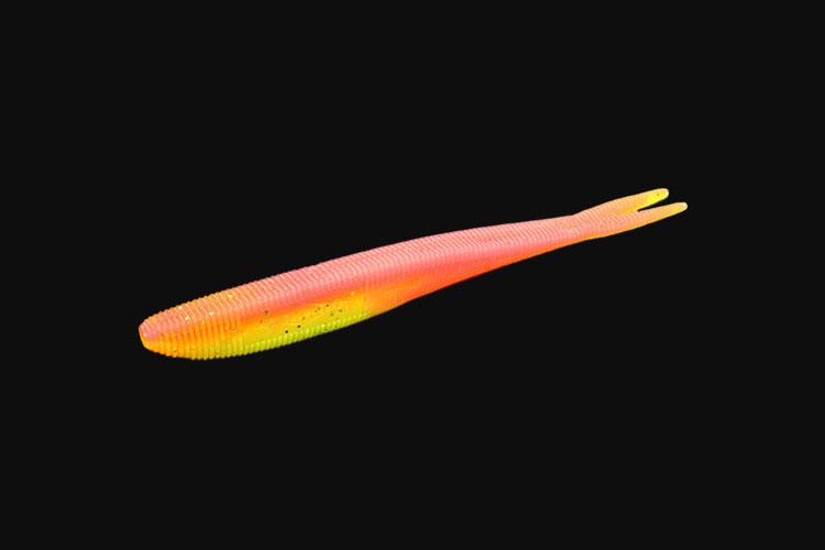 The original "edible" Mikado SAIRA spinning lure for drop-shot fishing. Designed for use with an offset hook, a drop shot leader, or a classic jig head. The lure's body has slits at the top and bottom to conceal the offset hook. Its ribbed body and swallowtail-shaped tip give this worm a sharp, impulsive action with active animation. This new product is available only in color variants tested with other Mikado shads!