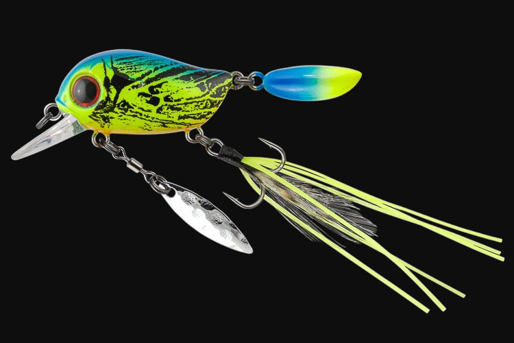 Особенности дизайна: KIKI MR 54F не похож на остальные воблеры-кренки, поскольку имеет в своей конструкции ряд оригинальных дополнительных элементов, призванных привлечь внимание хищной рыбы. Под брюшком у приманки находится подвижный металлический лепесток, который вращается при проводке, в задней части – жесткий пластиковый хвостик, который при движении в воде колеблется из стороны в сторону, а единственный тройник воблера оснащён мушкой из перьев и довольно длинных силиконовых нитей. Головная часть KIKI MR 54F рельефно имитирует жаберные крышки, а вклеенные объемные 3D глаза завершают реалистичный дизайн приманки.