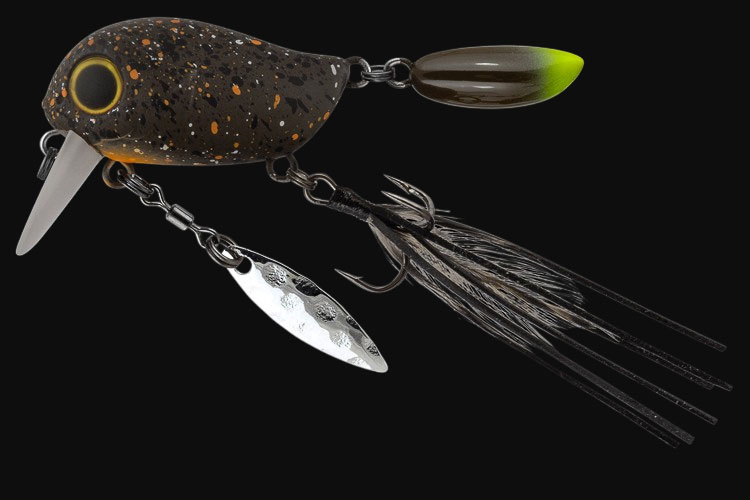 Особенности дизайна: KIKI 54F не похож на остальные воблеры-кренки, поскольку имеет в своей конструкции ряд оригинальных дополнительных элементов, призванных привлечь внимание хищной рыбы. Под брюшком у приманки находится подвижный металлический лепесток, который вращается при проводке, в задней части – жесткий пластиковый хвостик, который при движении в воде колеблется из стороны в сторону, а единственный тройник воблера оснащён мушкой из перьев и довольно длинных силиконовых нитей. Головная часть KIKI 54F рельефно имитирует жаберные крышки, а вклеенные объемные 3D глаза завершают реалистичный дизайн приманки.